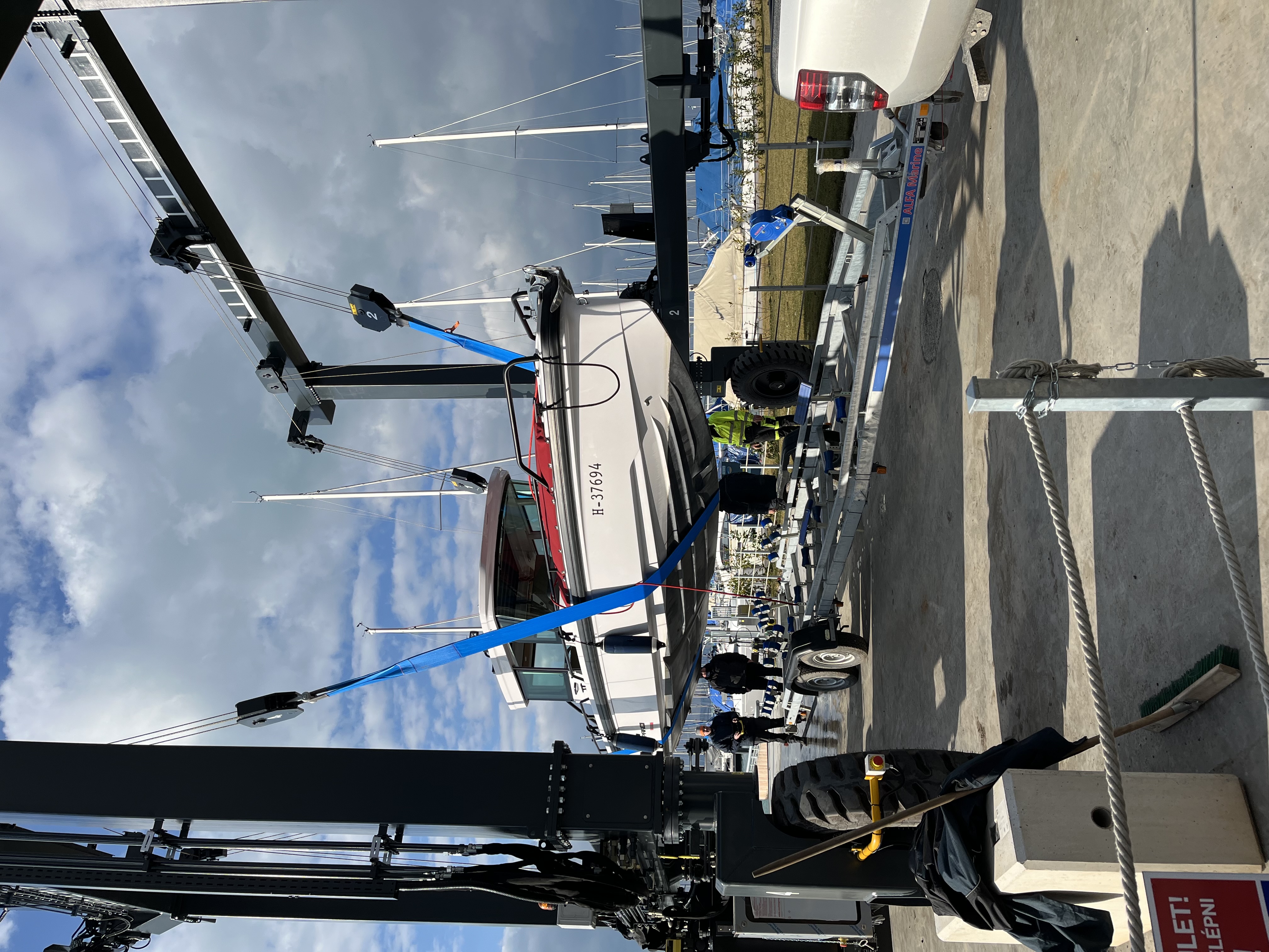 Egész éves üzem: a téli vízen tárolást szivattyús vízforgatás támogatja. A 25 tonnás travel-lift gyors és biztonságos ki-/bedaruzást tesz lehetővé, a mobil és telepített szennyvízszivattyúk pedig kényelmes, környezetbarát kiszolgálást nyújtanak.